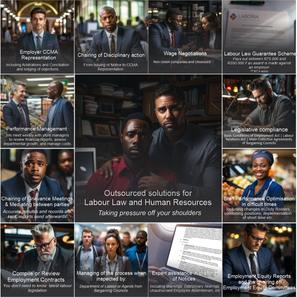 Laboria represents Employers at CCMA as well as Bargaining Councils through an Employers Organisation duly registered at the Department of Employment and Labour on a Member representing Member and has been doing this with remarkable success and a well-established record of accomplishment at the aforementioned labour forums. Theuns has developed a strong relationship with various Labour Law Advocates, and they work close together in order to ensure that clients receive professional advice based on a wide spectrum of experience.